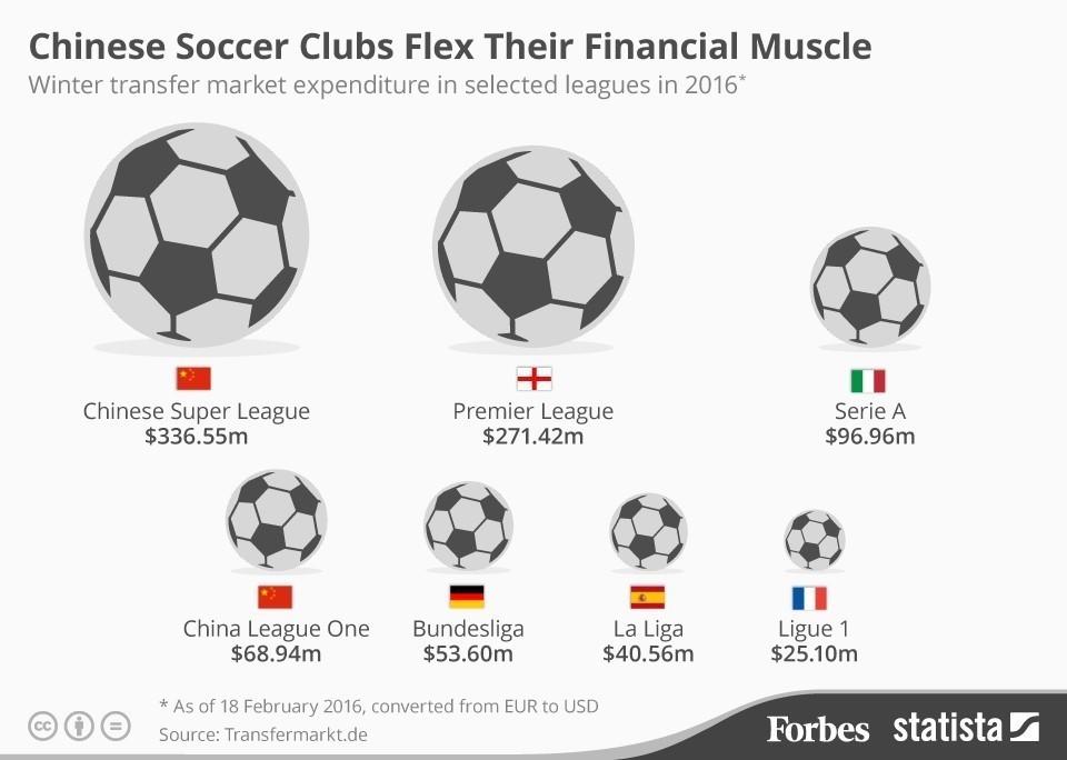China will be watching such developments closely, and clearly has an eye on protecting its league from hyper-inflated salaries and transfers. Already, the Chinese football association has introduced rules that limit the number of foreign players on the pitch, as well as announcing a 100% tax on transfer fees for foreign players at loss-making clubs. Seeing whether the government acts as cautiously in the international economy will be interesting.