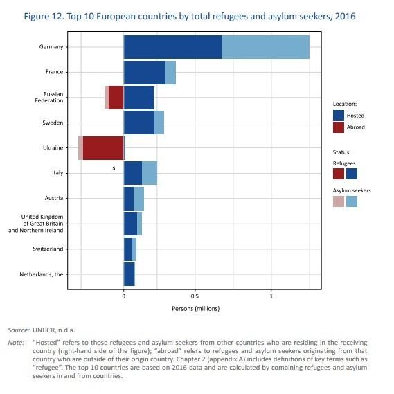 While Russia is the European nation to host the most migrants overall, Germany is the top destination for refugees and asylum seekers.