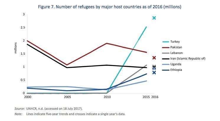 In 2016, for the third consecutive year, Turkey was the largest host country in the world, with 2.9 million refugees, predominantly Syrians (2.8 million).