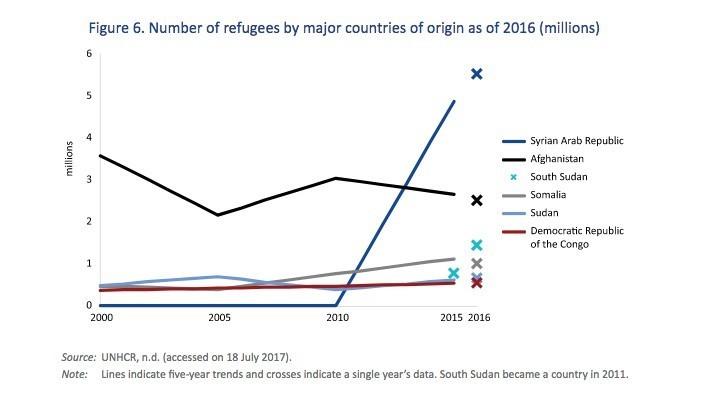 And large-scale violence that erupted in South Sudan in the middle of 2016 saw it become the third largest origin country for refugees, with over 1.4 million at the end of the year.