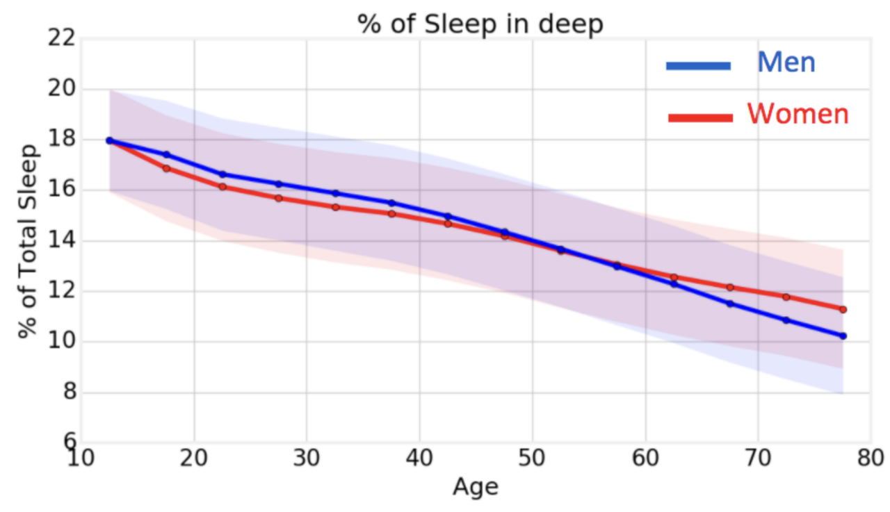 A typical 20 year-old gets half an hour more deep sleep a night than a 70 year-old.