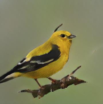 The reason we have toaster-level ANI instead of WALL-E-level AGI is that any algorithm that tries to generalise gets worse at the various tasks it confronts. For example, here’s an algorithm trained to generate a picture based on a caption. This is its attempt to create a picture from the phrase: ‘this bird is yellow with black on its head and has a very short beak’. When it was trained on a dataset that consisted entirely of birds, it did pretty well (notwithstanding the strange unicorn horn):