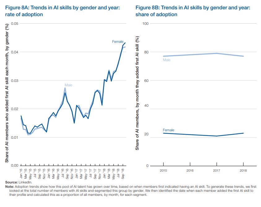 In the Fourth Industrial Revolution, there’s also a significant gender gap in AI professionals, with only 23% female, compared to 77% who are male, resulting with a yet to be closed gender gap of 70%.
