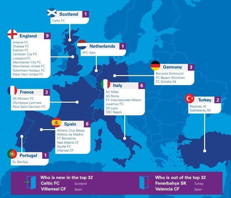 Joining the top 32 this year are Celtic – the first Scottish club to be ranked in the survey since KPMG launched the report in 2016 – and Spain’s Villareal. But Spanish club Valencia and Turkey’s Fenerbahce, meanwhile, were left off this year’s list.
