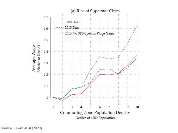 The authors describe a kind of firm-employee assortative matching not unlike the current trend towards within-class marriage. In an era of lower job security, the best people will flock to thriving companies capable of paying higher wages, pushing successful firms’ performance even higher. Over time, this brain drain becomes a rising tide that lifts all boats for employees of superstar companies, from the frontline to senior management.